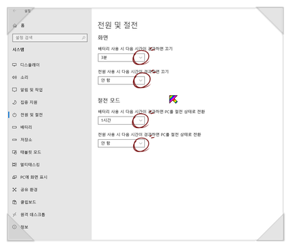 이때는 자동으로 화면도 절전상태로 들어갑니다.
