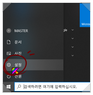 설정을 클릭합니다.