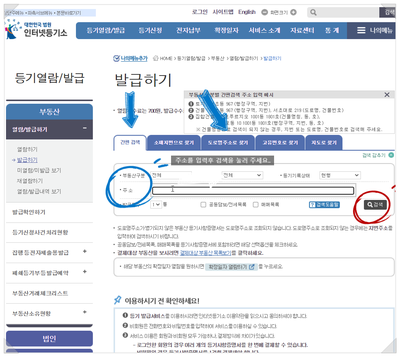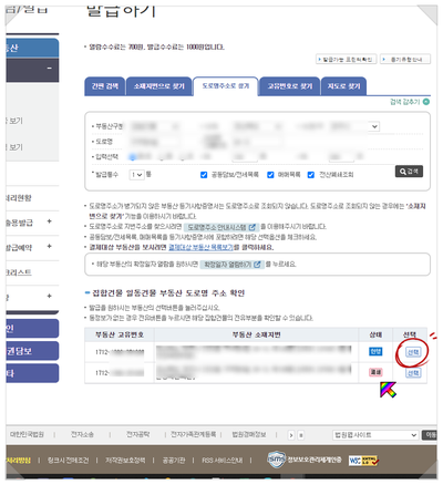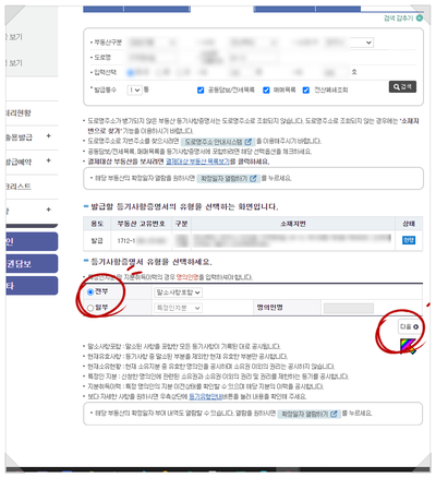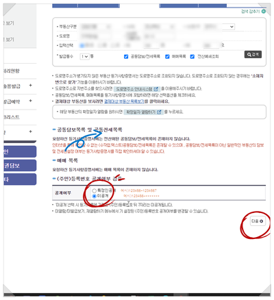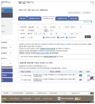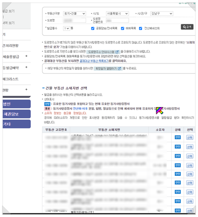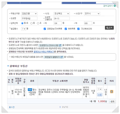 혹시 검색 결과가 나오질 않으면 부동산 구분을 잘못 선택한 경우가 많습니다.