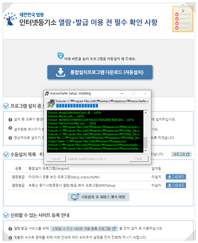 설치 후 컴퓨터가 느려지면 등기부등본 발급/열람 후 지우면 되겠습니다.