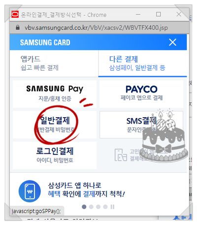 이번에도 다른 결제 일반 결제를 선택합니다.