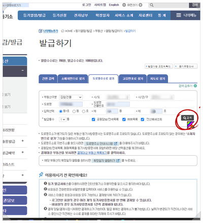 이제 주소를 넣고 검색을 누르시면 됩니다.