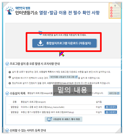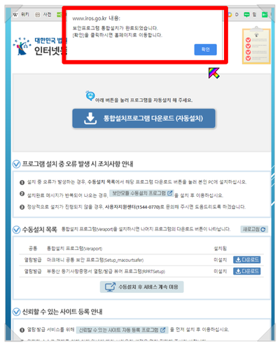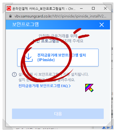 그전에 관공서, 금융기관 인터넷 서비스의 필수 코스 보안 프로그램 설치입니다.