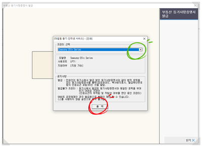 발급을 선택을 하시면 발급 가능 프린터를 확인해 달라는 메시지가