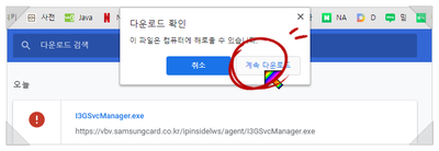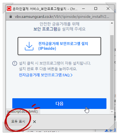 보안 프로그램을 설치하라는 창이 나옵니다.