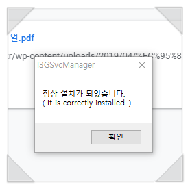 정상 설치가 되었다는 메시지가 나옵니다. 확인을 클릭합니다.
