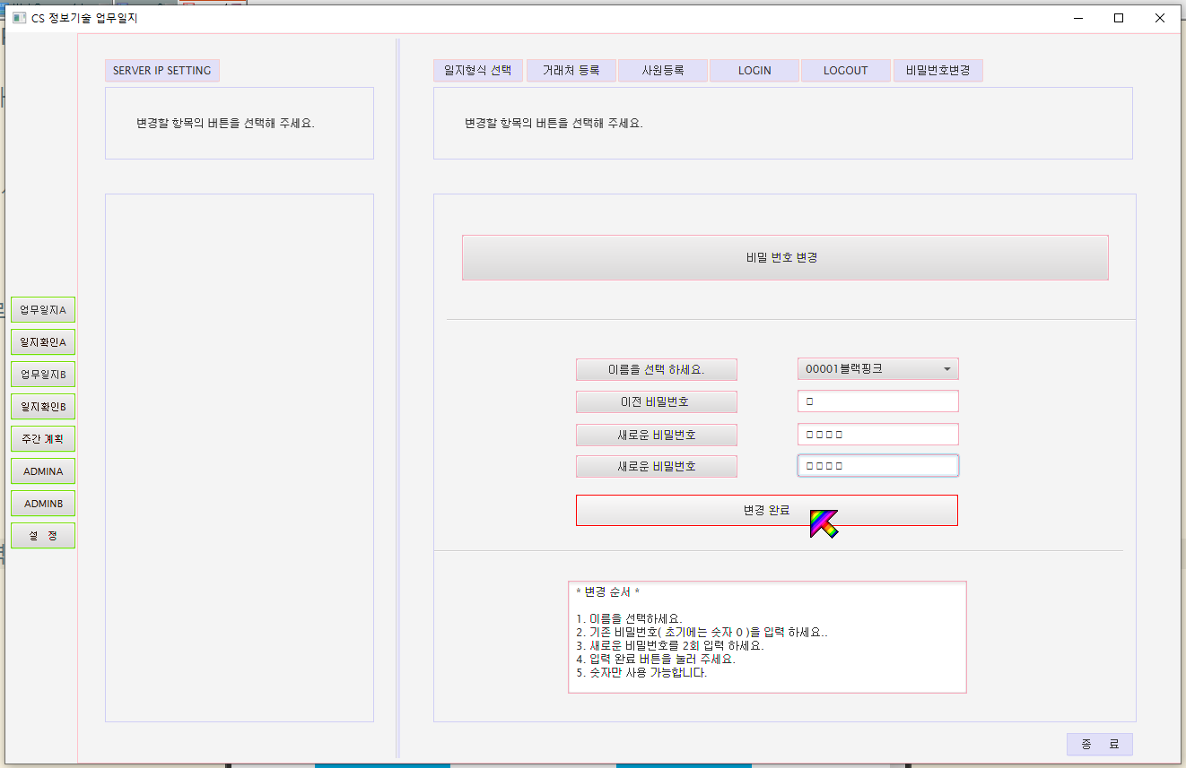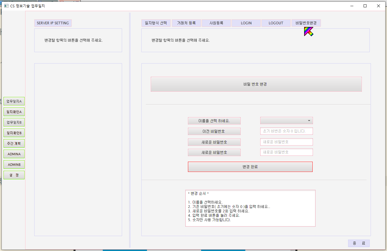 사원 등록을 했으면 이제 비밀번호를 변경할 수가 있다.