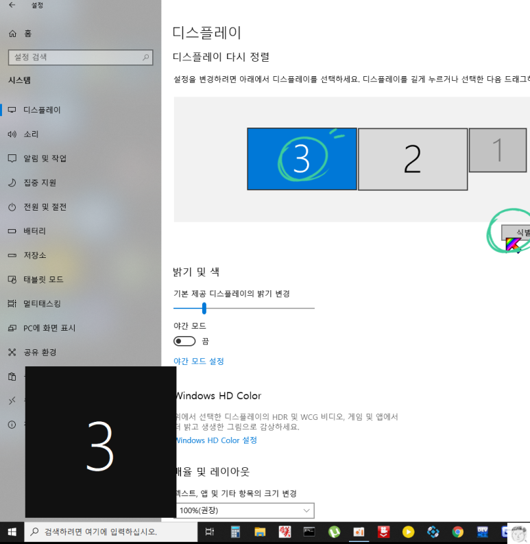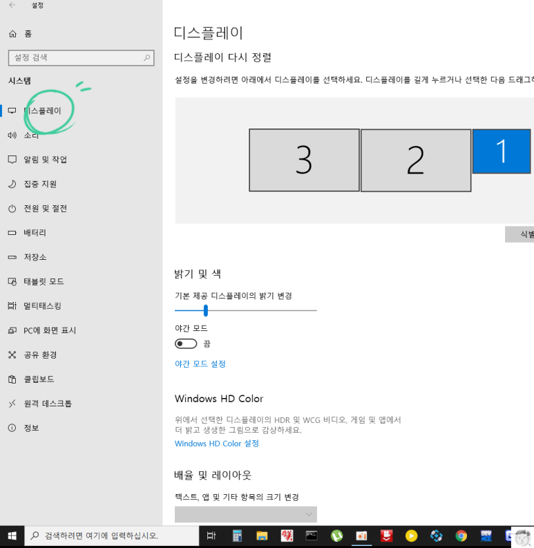 만약에 디스플레이 설정 화면이 나오지 않으면 왼쪽의