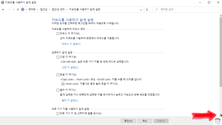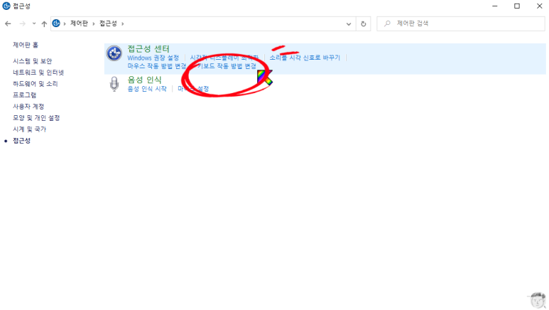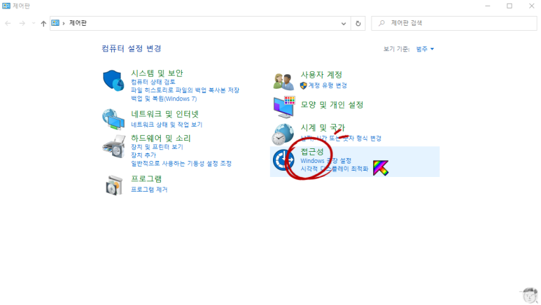 제어판이열리면 접근성 이라는 카테고리를 클릭합니다.